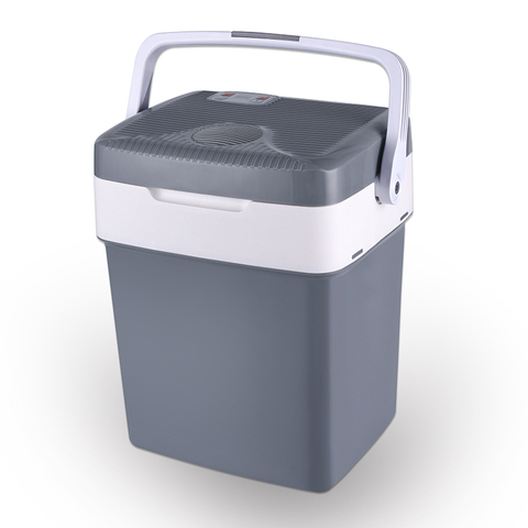 24L कूलर और गरम 12V 110-230V प्लास्टिक कूलर दरवाजा बाहर डेरा डाले हुए यात्रा बिजली कूलर बॉक्स